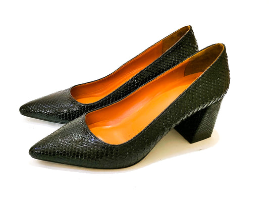 أُوكَازيُونحذاء تشيلسي أسود منقوش بجلد الثعبان بكعب 7 سم