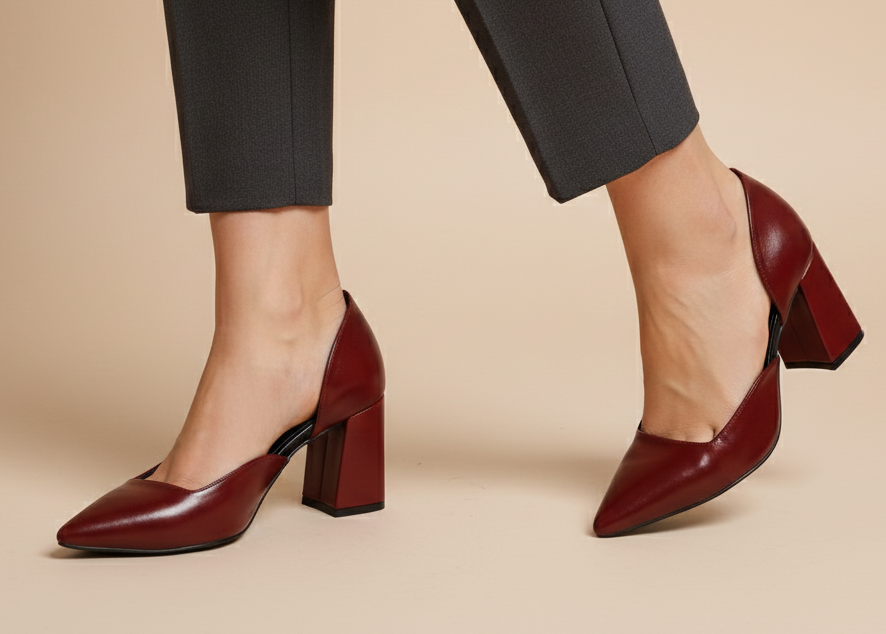 Rich Burgundy Leather Block Heel D'Orsay Pumps